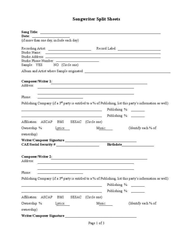 Songwriter contract template. Getting started band names logo website bands band member sharing percentages worksheet when forming a band its good to go over all the questions below and come to a decision on all these issues. Agreement entered into this day of 20 by and between herein designated as the publisher and author andor composer hereinafter jointly designated as the composer. The most efficient way to get your music contract done is using a music contract template. The composer hereby sells assigns transfers and delivers to the publisher its successors and assigns the original musical.
