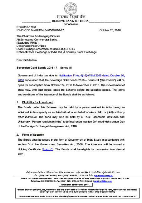 Sovereign Gold Bond Scheme July 2017 Tranche Ii Who Can