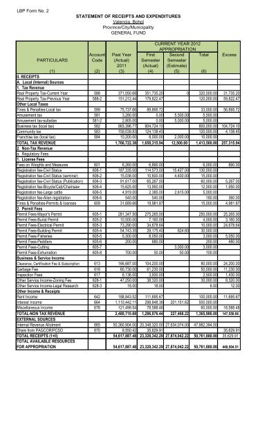 Statement Of Receipts And Expenditures El Nido Bulletin