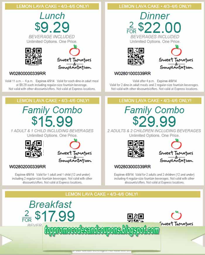 Sweet tomatoes printable coupons. The list gets updated daily and almost all of them are verified and free to use. Sweet tomatoes and souplantation share a name so if you live in the part of the country with souplantation locations you can still use these coupons. Souplantation coupons and coupon codes for january 2020 from couponcabin. Some locations also offer brunch hours on weekends.