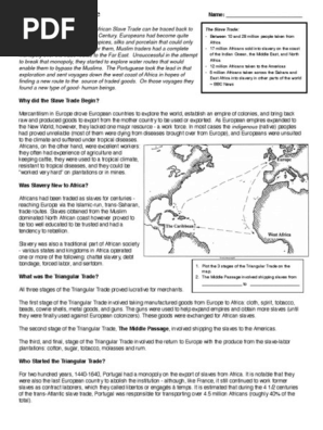 Black Peoples Of America Slave Trade Worksheet For 5th