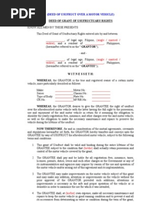Deed Of Usufruct Over A Motor Vehicle Deed Covenant Law