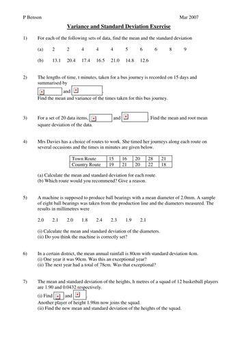 Variance And Standard Deviation Worksheet