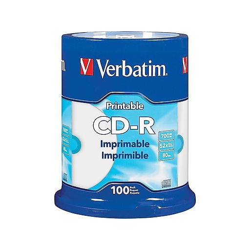 Verbatim cd r 700mb 52x white inkjet hub printable recordable media disc verbatim 52x white inkjet hub printable cd r discs are the ideal choice for full color edge to edge photo text printing on cddvd inkjet printers. Cd r blank discs bought in bulk dont have to be cheaply made. Get free shipping on your qualifying orders of verbatim cd r 700mb 52x white inkjet printable hub printable 100pk spindle. These discs have been extensively tested for compatibility with inkjet disc printers from primera microboards epson and more.