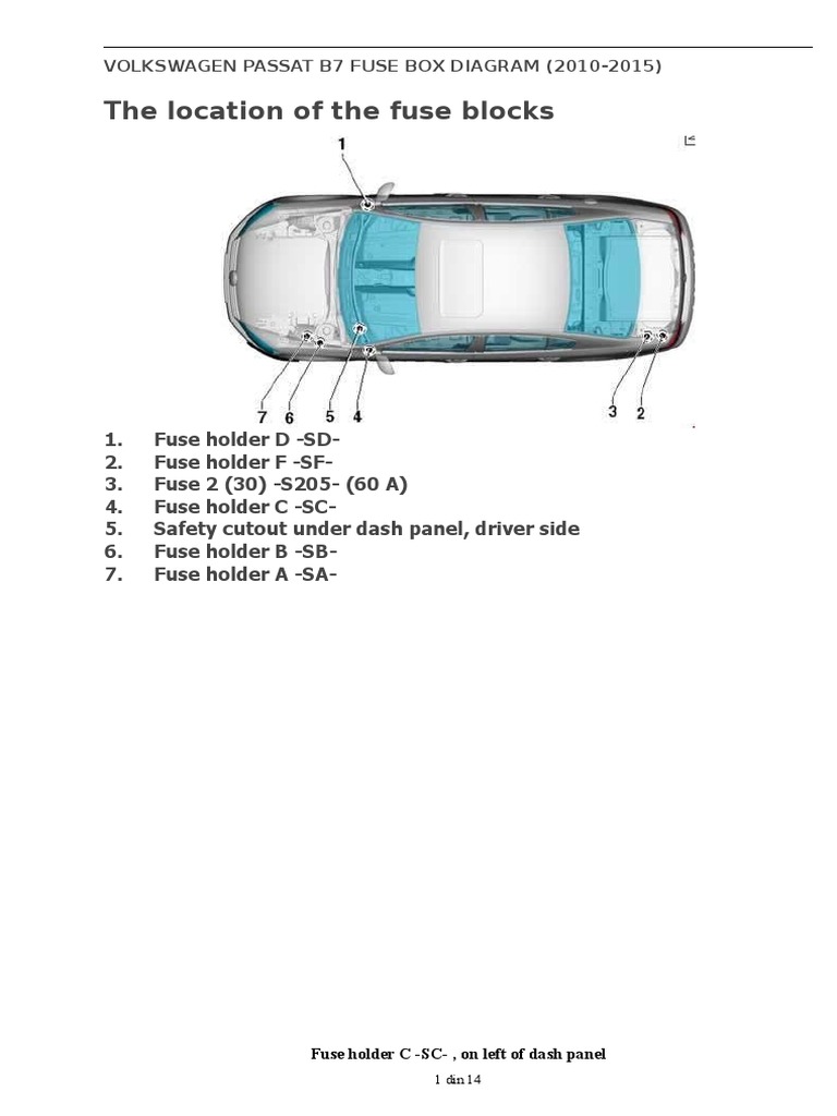 Fuse Box Location And Diagrams Volkswagen Passat B7 2011