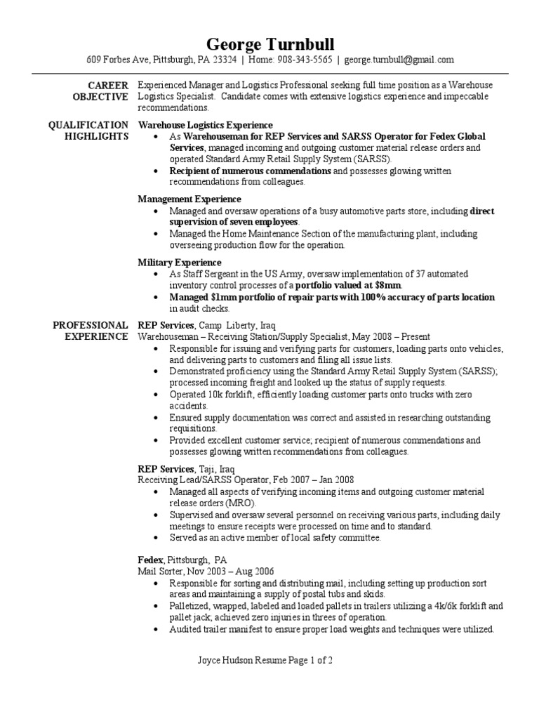 Resume For Logistics Specialist Hotwiresite Com