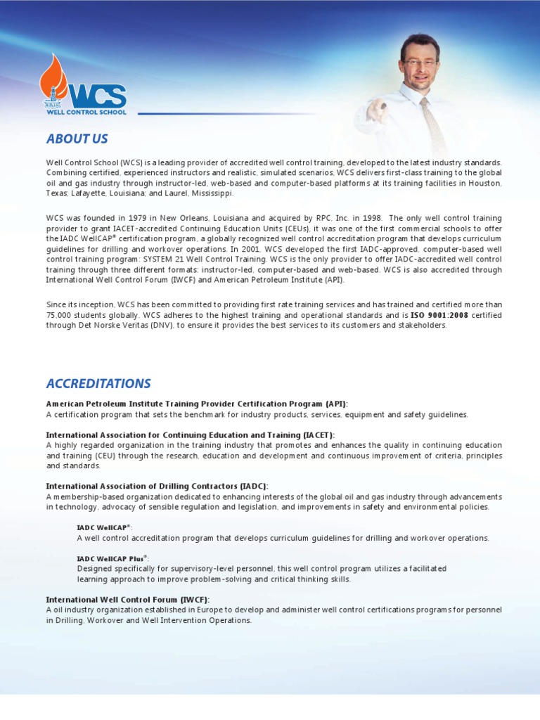 Well control certification. To intertek being an accredited well control program provider means more than simply administering tests and distributing certificates. Wild well offers iadc wellsharp courses using our real world case histories at locations in texas wyoming colorado pennsylvania oklahoma louisiana mississippi north dakota and around the world. Well control training develops a competent rigsite crew able to identify and respond to well control incidents. In house training courses provide all the advantages of our instructor led training with simulation workshops and electronic testing plus dedicated attention at your convenience.