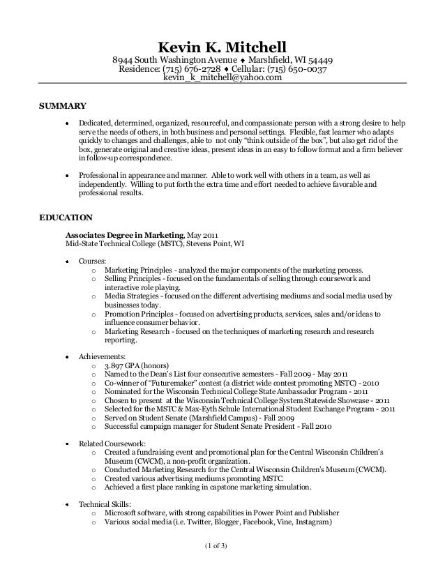 Kevin Mitchell Resume And References