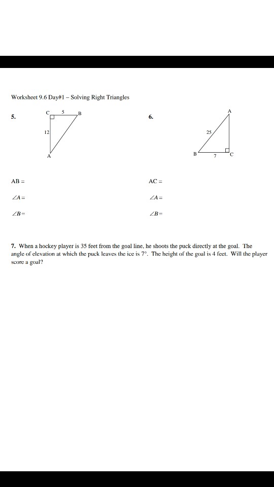 Solved Worksheet 9 6 Day 1 Solving Right Triangles 5 6