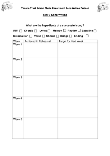 Song Writing Worksheet For 9th Grade Lesson Planet