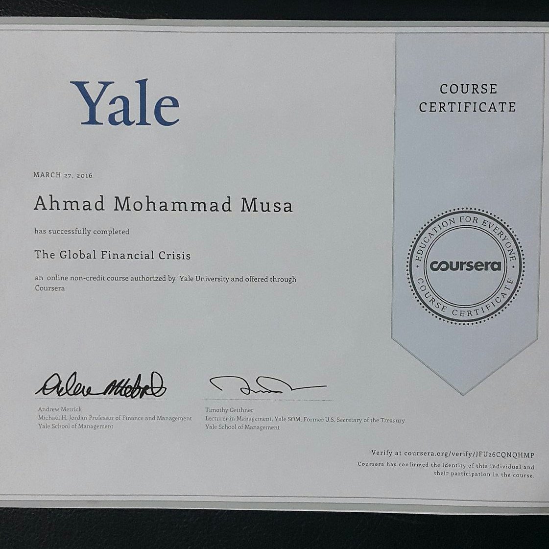 Yale Online Certificate
